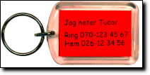 SOS-brickan är tillverkad av transparent plast, och etiketten är fluorescerande röd för att synas bra. Brickan tål regn och rusk, och lämpar sig även för utomhusbruk på t.ex. hundar och hästar. Mått. 4,7 x 3,2 cm (exklusive ringen).